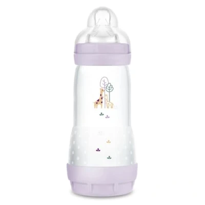 Anti-colic system: The mam Easy Start Anti-colic bottle reduces colic and other discomfort. Its ventilated base promotes air circulation so that baby can drink at his own pace Ultra Soft Flat Pacifier - The mam baby bottle has a soft, soft teat made of SkinSoft silicone. It reproduces the shape of the breast during feeding and is accepted by 94% of babies* Immediate benefits: 80% less colic for baby**, a natural feeding rhythm respects the baby's natural sucking mechanism PRACTICAL DETAILS - This baby bottle has been developed with medical experts. Quick and easy self-sterilisation in 3 minutes. 320ml capacity and 4+ months fast flow teat Lilac colour BPA/BPS free. Made in Europe. Box + recycle tab in sorting tray