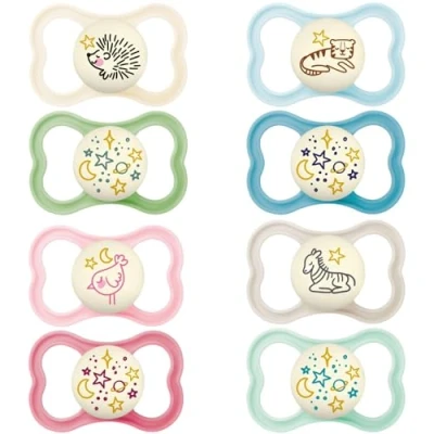 MAM Supreme Night Dummy 6+ Months (2 Pieces) Random Colour Glow in the Dark Silicone Ideal Baby Pacifier for Good Oral Development