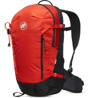 You like to shift up a gear when hiking. Lightweight and compact equipment is a must. The Mammut Lithium 20 Women is made mainly from recycled materials and the durable water-repellent treatment is PFC-free. The carrying system and shoulder straps are specially designed for the female anatomy. The very lightweight and breathable shoulder padding ensures additional comfort. Air channels in the 3D EVA foam provide good ventilation. The padded hip belt has a fold-out pocket for your smartphone. If you don’t need it, you can simply remove it. The same applies to the integrated rain cover. The backpack is compatible with hydration systems. The mesh side pockets allow access even when walking. With the Lithium 20 Women, you’re traveling in the fast lane in the mountains.Weight: 710 gVolume: 20LDimensions: 47x24x23 cm