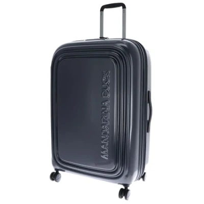 Nuova versione con finitura metal dell' iconica Logoduck + di Mandarina Duck in policarbonato, con linee morbide e volume compatto. Presenta 4 ru doppie ruote logate tono su tono e TSA lock integrato nella parte superiore per un'apertura facilitata, trolley system telescopico e organizzazione interna con rete apribile tramite zip.