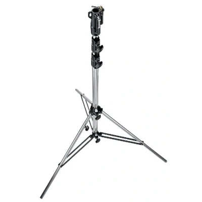 Professional heavy duty stand for location or studio Double braced leg base for extra stability and safety Universal head type 14 with 28 mm socket with 16 mm stud Air cushioning protects fingers and mounted equipment Provided with one levelling leg for stability on uneven terrain