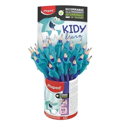 RECOMMENDED BY TEACHERS: The tool is recommended by teachers! A study of more than 130 teachers was conducted to test the tool: no doubt about its functionality and effectiveness! A CUTE AND FUN TOOL: Its shark shape will arouse the interest of many children! It is the ideal companion to accompany children in their learning phase. ERGONOMICS: Its shape is designed to adapt to children's hands. The shark's fin allows the child to position their fingers without overlapping and its soft material makes it comfortable to use. The stop at the end of the shark's head allows the pencil to be kept at an ideal distance from the lead for good visibility when writing. REMOVABLE AND ADAPTABLE: The tool adapts to different sizes of standard graphite diameter. It can be easily removed and put back on the pencil. The soft material allows it to adhere correctly to the pencil and allows a stable grip, which plays the role of non-slip during use. LEARNING RANGE: The finger guide comes from the Kidy learn range. Kidy learn is a fun and universal range that appeals to girls as much as boys.