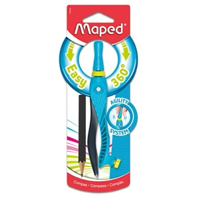 Ideal for younger children learning to use a compass for the first time. Innovative agility system which allows children to draw circles with one simple action. Agility system can be locked to enable user to use as a standard compass. Flexible grip for smooth and easy use. Universal holder with pencil included. Available in 2 assorted colours; pink and blue Safety point
