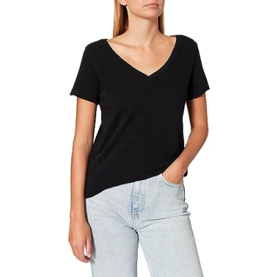 Marc O'Polo Denim Short Sleeve V NECK Basic Tshirt, Women's, Size: Medium, Black