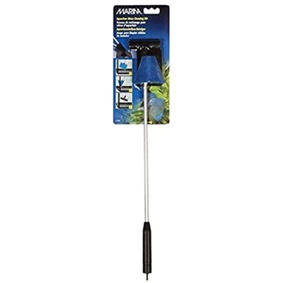 The marina glass cleaner has a pivoting head for flexible tank cleaning It has a sponge for cleaning algae and debris. A scraper blade attachment for removing stubborn algae. A 90-degree sponge attachment for cleaning aquarium corners. Length of handle: 52 cm (20.5 in)