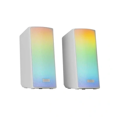 Mars Gaming MSRGB2W, Bluetooth 5.3 15W Speakers, DSP Sound Processor, Dynamic RGB Lighting, Full Mesh Front Panel, Control Box, 3.5mm Jack + USB Input, White