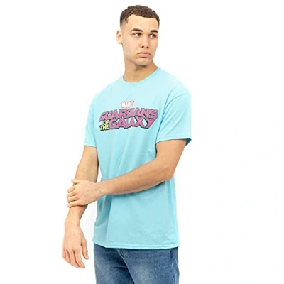 Marvel Men's GOTG Text Logo T Shirt, Sky, S