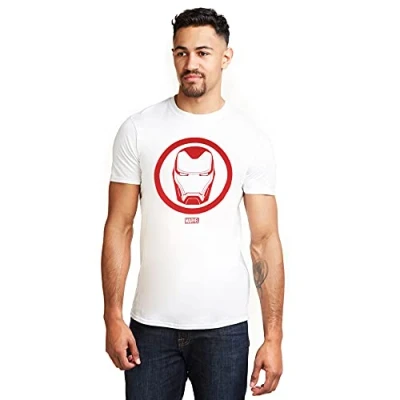 Marvel Men's Iron Man Emblem T Shirt, White (White Wht), S