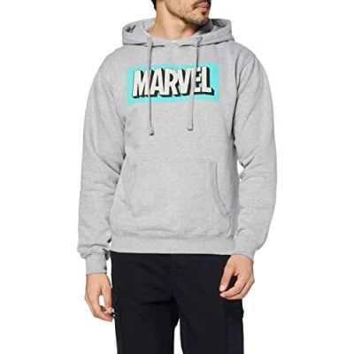 Marvel Men's Retro Logo Hooded Sweatshirt, Grey Heather, S