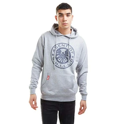 Marvel Men's Retro Shield Logo Hooded Sweatshirt, Grey Heather, S
