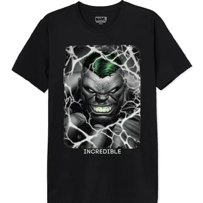Amazon Marvel "Incredible Hulk" Men's T-Shirt, Black, XL 100% official licensed products Machine wash 30° inside out