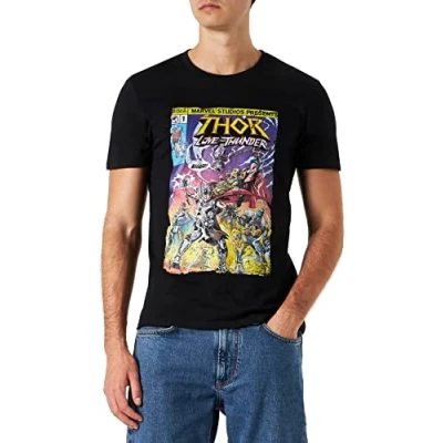 Marvel METLATMTS006 "Thor Comic Cover", Black, Size S 100% official licensed products Machine wash 30° inside out
