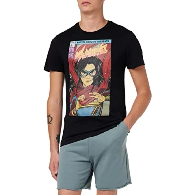 Marvel "Miss Marvel Comic Poster" T-Shirt Unisex UXMISSMTS007, Black, XL Unisex Cotton 100% official licensed products Machine wash 30° inside out