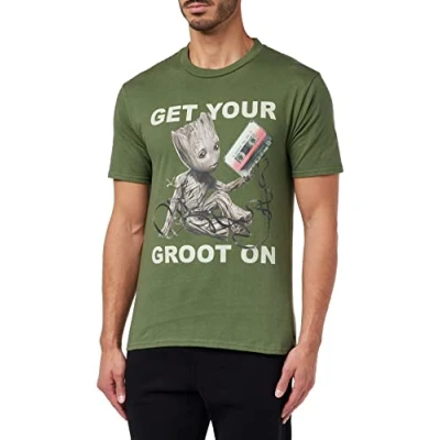 Marvel GET YOUR GROOT ON MEGUGAMTS072 Men's T-Shirt, Khaki M 100% official licensed products Machine wash at 30°C inside out