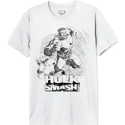 Amazon Marvel Hulk Smash Men's T-Shirt, White, Size 3XL 100% official licensed products Machine wash 30° inside out