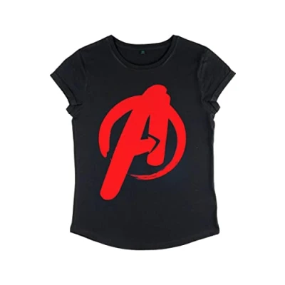 Marvel Women's Classic Avenger Paint Rolled Sleeve T Shirt, Black, L