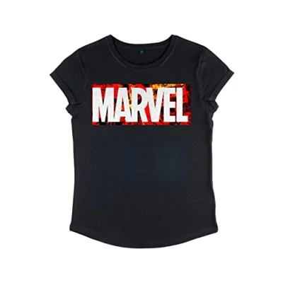 Marvel Women's Hard Mix Rolled Sleeve T Shirt, Black, XL