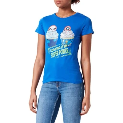 Marvel Cooking Is My Super Power WOMARCOTS036 Women's T-Shirt, Cobalt, Small 100% Official Licensed Products Machine wash at 30°C inside out