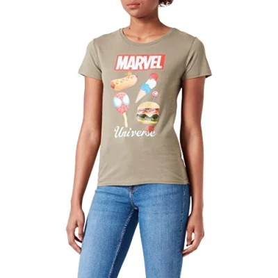 Marvel Eat Universe WOMARCOTS035 Women's T-Shirt, Khaki, Size L 100% Official Licensed Products Machine wash at 30°C inside out