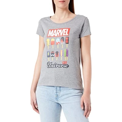 Amazon Marvel Eat Universe WOMARCOTS032 Women's T-Shirt, Grey Melange, Size XXL 100% Official Licensed Products Machine wash at 30°C inside out