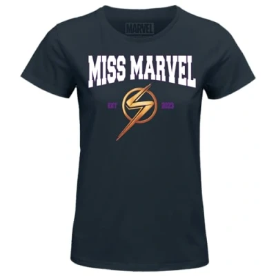 Marvel Miss Marvel EST 2023 WOMAVLSTS002 Women's T-Shirt, Navy, Small 100% Official Licensed Product Machine washable at 30°C
