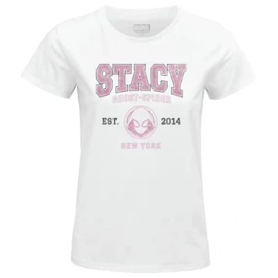 Marvel Vintage Spidey Stacy WOMARCOTS039 Women's T-Shirt, White, S 100% Official Licensed Products Machine wash at 30°C inside out