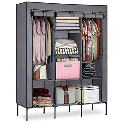 PRACTICAL & FUNCTIONAL - A safe, healthy and reliable clothes organizer, made of heavy duty steel that provides excellent stability and durability at full light load. Easy access to bedroom, pantry, laundry room, closet, wardrobe and more. STURDY & DURABLE CONSTRUCTION - Made of high quality material, which is a combination of sturdiness and reliability. The high quality steel frame provides additional support, ideal for extended use and the sturdy polypropylene connectors take care of your clothes. This large fabric coat rack meets your long-term storage needs. 【Cute Closet Hanger】 The hanging rail and 12 shelves provide enough space to store many longer clothes and folded clothes, making it a perfect solution for organizing your bedroom and living room. Waterproof and dustproof: Four dust proof zippers to protect your items from dust. The wardrobe is completely waterproof and easy to clean.