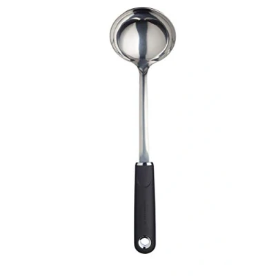 SIMPLE STIRRING, SCOOPING AND SERVING: this expert soup ladle is intelligently designed for comfort and robustness UNIQUE HANDLE: these MasterClass kitchen tools feature wide, soft-touch handles with thumb grips, for total comfort and a neat look PERFORMANCE ASSURED: the spoon bowl is made of stainless steel, which is durable, as well as corrosion, stain and odour-resistant SLEEK STYLE: this soup ladle has a mirror-polish finish and chrome accents that shimmer in the light, for a touch of kitchen luxe The MasterClass stainless steel ladle is dishwasher safe, and includes a 5 year guarantee