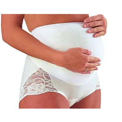 Supportive sheath for pregnant women with elegant lace insert on the leg circumference Front in cotton knit gently extendable and functional anatomical band that supports the belly without compressing it Measurements:III-VII