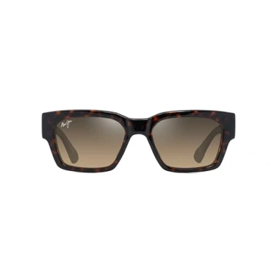 Maui Jim Kenui Rectangle Sunglasses, Shiny Dark Havana W/Trans Yllw/Hcl Bronze Polarized, Medium