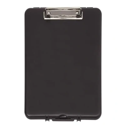 AmazonThe black clipboard with storage compartment is made of break-proof polypropylene and is therefore ideal for a wide range of applications. With the practical clip lock and sturdy plastic hinge, the clipboard is an ideal companion in the office, in workshops or on the road. This document folder in A4 format is versatile and offers shock, dust and splash-proof storage for documents. Its slim shape, makes this clipboard folder fit Perfect into briefcases, backpacks or schoolbags and is therefore very easy to transport. Flat clip with dimple handle for a secure grip and easy handling. Its high retention Force and the 8 mm Clamping width allow to hold small stacks of paper.