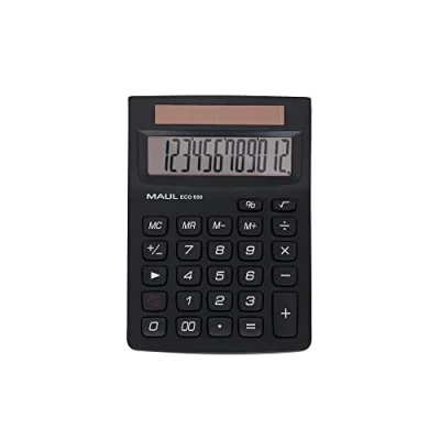Environmentally friendly + awarded the Blue Angel/uz116: thanks to the solar cells you do not need batteries. The case is made from 80% recycled plastic, the packaging is made from recycled material. The large desktop calculator in professional look is stable and resilient. The buttons are rubberised so that you do not slip. The 12-digit, angled display is particularly large and easy to read. Calculation Functions The calculator has all the important functions such as basic arithmetic and percentage or root calculation. The calculator fits in the jacket, backpack, school bag and briefcase. With a size of 14.6 x 10.4 cm, the calculator sits comfortably in the hand, rounded edges are comfortable to grip. Precision and reliability: Maul quality means, among other things, that all computers have undergone intensive tests before recording. That's why the MAUL calculator comes with a 5-year warranty. Every Maul product has the experience of a German family business with 110 years of history. We combine sustainability and new technologies with functionality and craftsmanship.