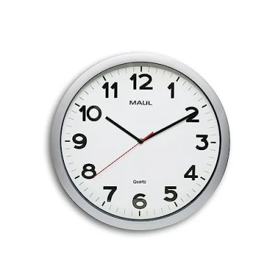 Quartz watch with automatic time adjustment and diverter summer and winter time (DCF77 signal). Large wall clock: wall clock with 20 cm diameter in modern look. Thanks to its good readability, the MAULstep clock is ideal for large rooms and entrance areas. VERSATILE WALL CLOCK The stylish clock is for indoor use only. Suitable as a wall clock in the office or as a kitchen clock. The cover is made of flat mineral glass, modern plastic frame in silver. Wall clocks: The MAULstep clock is available in 4 different sizes (diameter 20 cm, diameter 30 cm, diameter 35 cm, diameter 40 cm) and in 2 designs (radio-controlled clock, quartz clock). The radio-controlled clock in the size diameter 30 cm is also available in 2 colours (white, silver). MODERN WATCH: White dial with Arabic numerals and hour, minute and second hands. Box contents: 1 x wall clock Maul step + 1 x battery 1.5 V (AA). Every Maul product has the experience of a German family business with 110 years of history. We combine sustainability and new technologies with functionality and craftsmanship.