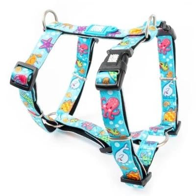 High quality: The lightweight harness is made of soft, hypoallergenic and quick-drying neoprene with extra padding for a comfortable grip and extremely tear-resistant polyester with precise and cool print. The metal parts are made of solid, solid, brushed material Safe: the 2 power humps, our mega-strong click fasteners, hold 5 times the dog's weight. Thanks to the extra D-ring at the front of the neck, the dog can be better guided if necessary Practical and comfortable: it does not chafe on the front rails and thus provides maximum freedom of movement for your pet. Flexible: the harness is suitable for most dog breeds, as it can be individually adjusted thanks to the shape and four controls for the perfect size adjustment Clean: so that the crockery can look like new even after a trip in bad weather, it is machine washable at 30 °C