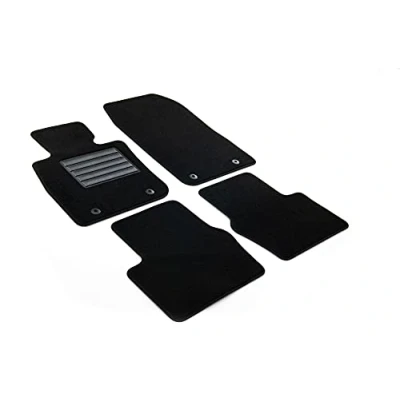 Floor mats for Mazda CX-3 06.2015 onwards Set: 2 front mats and 2 rear floor mats; mounting systems: 4 original buttons mounted Black rug, cotton trim with strap, non-slip for the whole circumference of carpets, 100% made in Italy, automotive certificate High-frequency electric welding applied heel protection at areas that are subjected to heavy wear 100% high quality polypropylene, 650 g/m² fibre - 2100 g/m² total weight. Floor mats for Mazda CX-3 06.2015 onwards