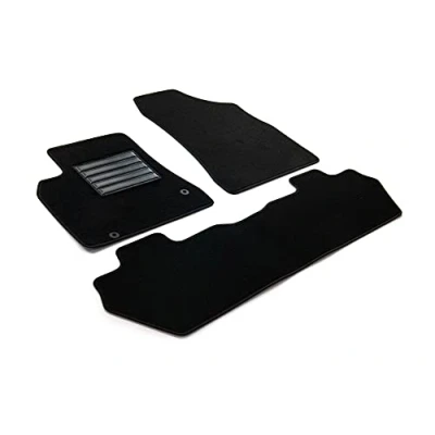 Floor mats perfect fit for Citroen Berlingo 2008 > 11.2018 Set: 2 front mats and 1 rear foot mat; mounting systems: 2 original buttons mounted Black rug, cotton trim with strap, non-slip for the whole circumference of carpets, 100% made in Italy, automotive certificate High-frequency electric welding applied heel protection at areas that are subjected to heavy wear 100% high quality polypropylene, 650 g/m² fibre - 2100 g/m² total weight. Car Mats for Citroen Berlingo 2008>11.2018