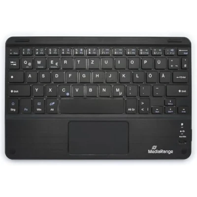 Wireless keyboard without cables: this wireless keyboard impresses with its solid and comfortable design, functional features and offers maximum productivity for all applications in the office or at home Keyboard layout: The German QWERTZ layout including 63 keys and touchpad for easy control is suitable for both left- and right-handed users. Includes practical function keys for quick access to various operating systems (Windows/iOS/Android) Bluetooth connection: the wireless keyboard is connected quickly and easily via Bluetooth 5.0. The input devices have an integrated lithium-polymer battery with 180 mAh and up to 30 operating hours running time up to 30 operating hours Splash-proof: thanks to the splash-proof design, smaller splashes of liquids remain without consequences with this PC keyboard and make this device your reliable everyday companion in any area of application Best possible compatibility: the MediaRange keyboards are compatible with computers and all common operating systems for easy use and convince even with intensive use as a powerful and reliable work tool