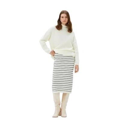 Medium Rise Midi Knitted Skirt, Black Stripe, M