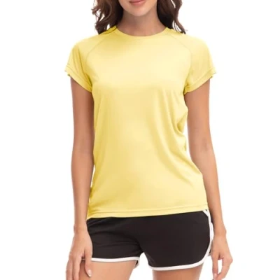 MEETWEE Swim Shirts for Women, Short Sleeve T Shirt Athletic Casual Tops Quick Dry UPF 50+ Running Surfing Workout Yoga Sun Tee Shirts, Lemon Yellow, XL
