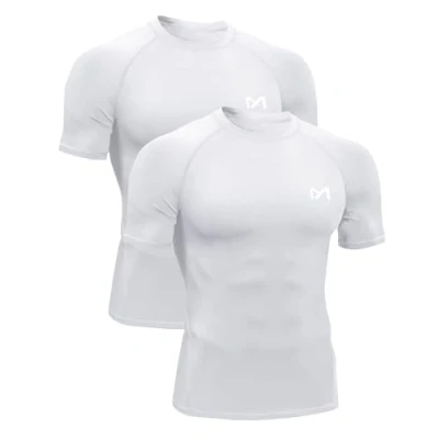 MEETYOO Compression Shirt Men,Functional Short Sleeve Fitness Men Sports Breathable Running for Jogging Gym, White+white, S