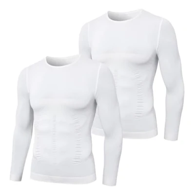 MEETYOO Men's Compression Shirt Long Sleeve Shapewear Slim Bottom for Running Fitness, White+White, S
