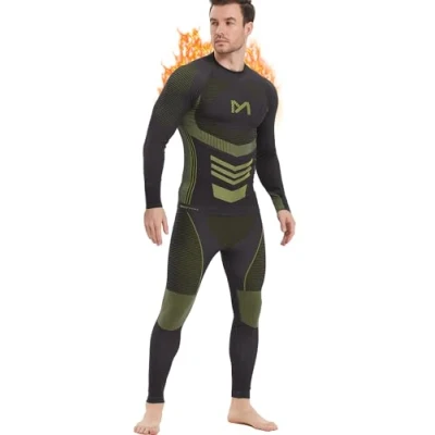 MEETYOO Men's Thermal Underwear Set, Wicking Long Johns Quick Dry Base Layer Sport Compression Suit For Workout Skiing Running Hiking, Ugreen 1, XL