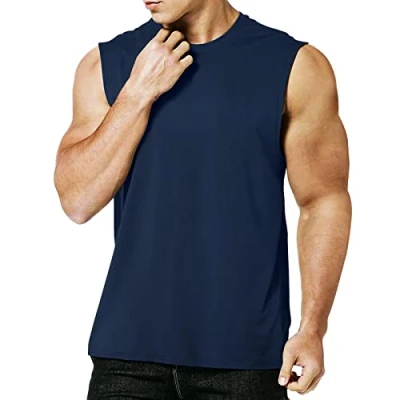 MEETYOO Men’s Sleeveless Quick Dry Tank T Shirt Vest Top for Running Gym Sport Fitness, Blue, L