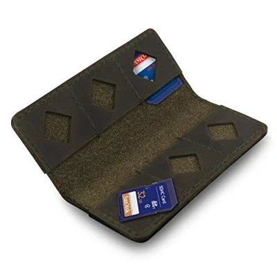Exquisite leather craftsmanship - The Mega Gear Leather SD card holder is crafted with high quality, leather attached with fine and durable stitching, giving it a sleek look and a slim body. An exemplary model of artisanal craft combining the pleasant feel and the handsome look of leather without sacrificing versatility and convenience. PRACTICAL - The Mega Gear Memory SD Card Leather Case has s slim, minimalist design and offers a great way to simplify your storage of SD cards, Micro SD cards and SIM Cards for your tablet, notebook, camera and cell phone etc. Durable - the Mega Gear Leather SD card holder is made from durable materials and Manufactured with durable and strong stitching to ensure that it has a long lasting life. Size - The Mega Gear Leather SD card holder has 12 pockets to store all your SD cards. Stylish - The Mega Gear Leather SD card holder comes in 7 colours, Black, brown, Red, blue, Green, camel and cinnamon. Choose a style that best fits your personality.
