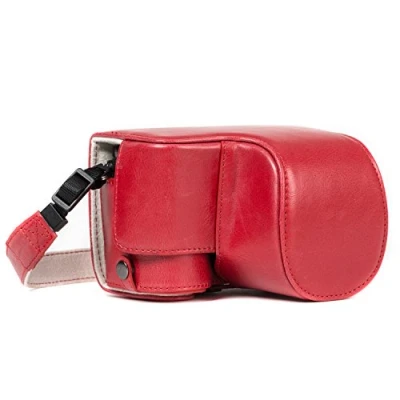 MegaGear MG1235 Ever Ready Leather Case and Strap with Battery Access for Sony Alpha A6500 Camera Red