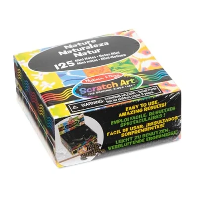 Scratch messages, doodles, designs, pictures, patterns and more on shaped scratch art notes to reveal swirls of colour and create unique messages, artwork, gift tags and more. Includes 125 notes in 5 shapes with nature themes (flower, bird, leaf, frog and fish), wooden etching pen and a handy table dispenser. Scratch away the black coating to reveal 5 coloured patterns underneath. Perfect for classrooms, gift bags, holiday treats, gift baskets, reminders, travel activities, eventual adornments, sweet notes and more. Great gift for preschool children and adults aged 4 to 104 years for interactive, screen-free fun., Manufacturer: Melissa and Doug