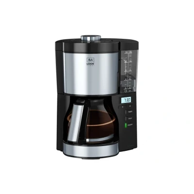 Programmable filter coffee machine with features designed for easy operation and maintenance, Bright timer reading with LED display Coffee customisation thanks to Aromas Selector, Programmable water-hardness level thanks to lime scale display Removable filter holder and glass pot compatible with dishwasher, Automatic switch-off after 15 minutes Water measurement with 10-15 cup capacity, Clean and bright Melitta Look thanks to combination of clear design and stainless steel materials Contents: 1x Melitta Filter Coffee Machine, Look V Timer Model, Stainless Steel, 21 x 24 x 33.5 cm, Black, Art. No. 6766591, Weight: 2.20462262 Pounds, Manufacturer: Melitta