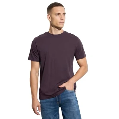 Men's Basic T Shirt in Plain Colour, Bordeaux red, 3XL