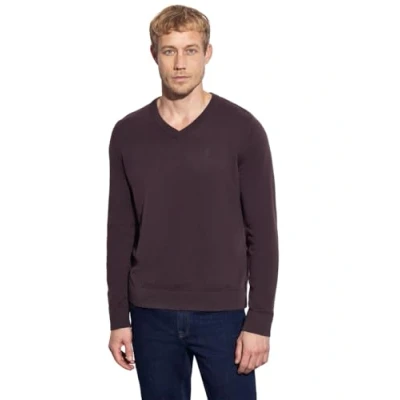 Men's Basic V Neck Knitted Jumper, Bordeaux red, 3XL
