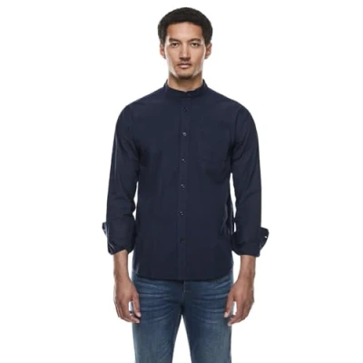 Men's Stand Up Collar Shirt, eclipse blue, S